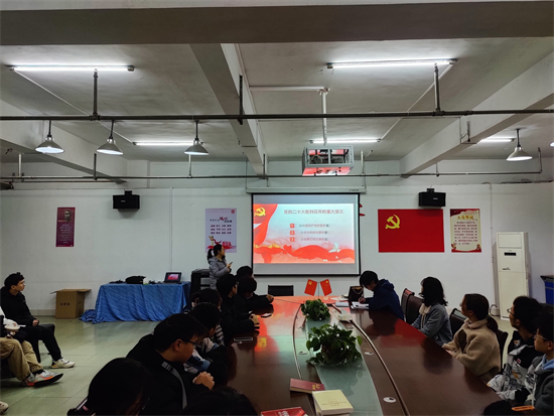活动中,樊云燕从中国共产党发展史、中华民族发展史、世界文明发展史三方面向同学们介绍了党的二十大胜利召开的重大意义。还向各位员工干部们介绍了党的二十大具体精神内涵,中国共产党的中心任务,中国现代化的含义等,并结合员工干部的职责将党的二十大精神更加生动形象地讲授给在座的各位同学。樊云燕强调员工干部要发挥好带头和桥梁作用,带动员工共同学习宣传贯彻党的二十大精神,坚定不移听党话跟党走。在场的员工干部们认真聆听老师对党的二十大的专业解读,也对党的二十大精神有了更深刻的心得体会大家纷纷表示会将党的二十大精神融入自己的日常学习生活中,踔厉奋发,不忘初心,牢记使命。