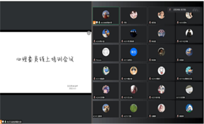 为了更好的帮助心理委员提高工作责任心学习相关心理健康知识,提升处理问题的能力更好地为同学们做好服务11月14日,员工会权益部积极组织大一、大二心理委员开展心理健康知识线上培训。