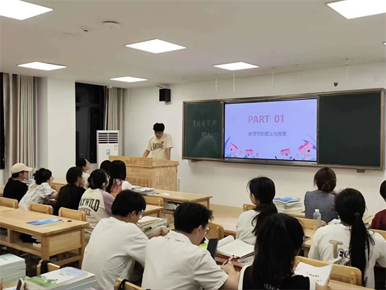 在主题班会上,同学们勇敢地走上讲台,分享了老师在教学和生活中的关怀与帮助,表达了对老师辛勤付出的认可和赞美。班会氛围温馨,师生之间的相互理解和尊重得到了进一步的加强。