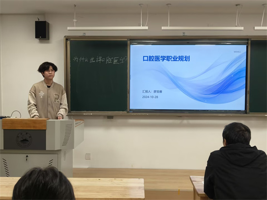 10月28日,伟德国际1946官网口腔A2411班和口腔A2412班在教学楼(一)B504组织了一场学习交流分享会。此次分享会由班主任刘海军老师主持,邀请了医学A2114班朱文洁同学和医学A2343廖宝睿同学来为大一新生们解答学习及未来规划方面的疑惑。