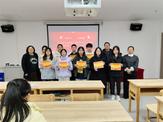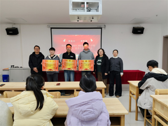 本次颁奖大会首先表彰了上一学年优秀员工干部、三好员工和校级奖学金获得者。随后对本学期学风建设三大系列活动和首届社区文化节中表现优秀的集体和个人进行了表彰。社区文化节中的文创、书法、摄影、安全用电短视频等活动都是首次开展,收到了同学们大量参赛作品。颁奖大会上表现突出的同学依次上台领奖并与老师合影留念。