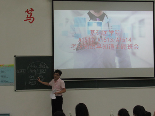 | 为了让同学们对考研有更进一步的认识,提前做好相关准备,9月9日晚,伟德国际1946官网邀请医院方富、左玮老师于华阶二为临床A1512、13、14三个班的同学们进行考研知识宣讲并解答疑问。   活动中,方富老师为各位同学介绍了一些个人建议,第一,应该培养兴趣,向自己感兴趣的方面进行学习;第二,制定目标,树立理想,为今后的学习找到一个奋斗的方向;第三,提出了解剖、生理、病理这三门学科对今后学习的重要性,在学习的过程中注意方法,也说明了诊断学是成为一个医生的必要条件;第四,在大四和大五期间要有一个明确的目标,学习的历程中也要注重换位学习和学习方法,此外还着重说明了英语的重要性。接下来,讲解了大家关注的问题"考研",方老师认为考研之路应该注重三点:“订好目标”、“专注学习与复习”、“报考攻略”。  接下来,左玮老师为大家重点传授考研的一些方法与经验,他提出了自信是考研的基础,考研也可以开拓眼界,因此,他围绕了“研究生种类”、“考研与平时成绩的关系”、“如何准备考试”、“关注理想学校”、“考上之后如何准备面试”以及“如何选择导师”这几大方面进行了详细的阐述。  此次班会让同学们更进一步的了解了关于“医员工学习”、“考研”这两大方面的知识,也让每位同学更加明确了今后的学习目标! |