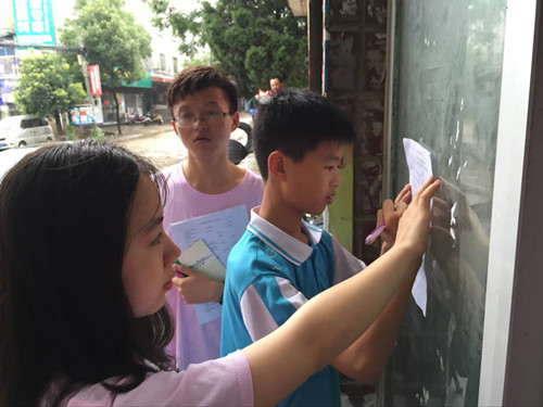 此次活动因为大雨给同学们活动的开展加大了难度。最后大家商量决定,主要以队员们挨家挨户上门为主。同学们主动走近镇上居民家中,向小朋友说明来意。在那里,同学们发现大多小朋友都是独自在家写作业,或者是爷爷奶奶在做事,他们在旁边的小板凳上写作业。他们腼腆的接过调查问卷,一些年纪较小的小朋友无法看懂题目的意思,三下乡队员耐心的在旁边陪伴并且一一解释。