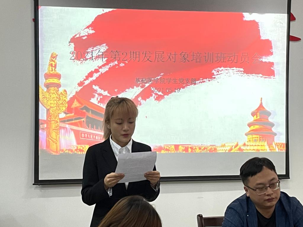 一首昂扬的《国际歌》为此次的动员会拉开序幕。美春同学代表参加培训的发展对象们进行表态发言,她希望通过此次的培训不断完善自己、提高自己,在今后的生活和学习中能更好的发挥出党员带头作用。员工党员刘璐璐同学发言,她为大家分享了自己在发展对象期间的经历和经验,她还表示全心全意为人民服务不只是表现在口头上,更重要是表现在平时的行动中,在国家和党需要我们的时候,要有“我能上”的思想,把国家的利益放在第一位。