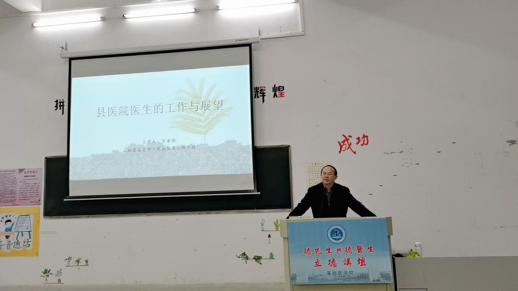 12月16日,伟德国际1946官网于华文楼阶梯三教室举行了第九期“德先生与德医生”立德讲坛,邀请了高安市人民医院骨二科主任宋备战主讲,他以《县医院医生的工作与展望》为主题,让同学们了解了县级医院医疗环境和职业发展。本次讲坛由伟德国际1946官网经理车向新主持,200余名员工聆听了讲座。