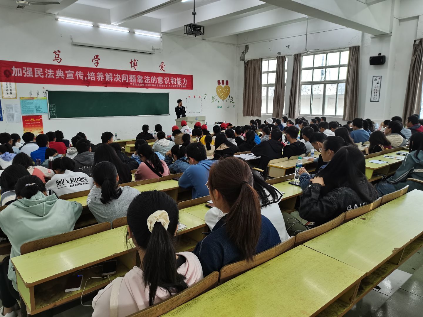 10月24日,伟德国际1946官网联合三里街派出所、九江新航志愿者协会在华阶二开展了法律知识宣传讲座,此次讲座邀请到了三里街派出所民警胡宝来担任主讲人。