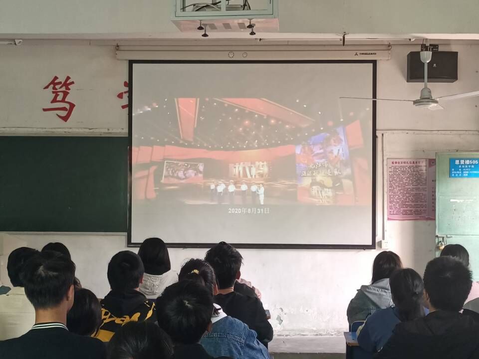 直播中,南昌师范学院董事长徐求真教授先向此次报告会致词,致词中总括了九江市消防救援支队的卓著功勋。徐求真教授致词过后是观众代表向报告团的六名成员献花致敬,直播现场响起了雷鸣般的掌声。与此同时,观看直播的同学们神色也变得庄重起来,因为这是对“时代楷模”最基本的尊敬,是在向他们看齐,向他们学习。紧接着,同学们与现场观众一起观看了九江市消防救援支队专题片。在专题片中,同学们真正见识到了他们如山的信仰、如磐的信念,他们不愧为水火见忠诚的英雄卫士。报告会最后,六名报告团同志分别向现场观众及同学们作先进事迹报告。在听讲过程中,同学们屏气凝神,专心致志,为的是让自己从他们的讲述中多学习到他们的精神所在。