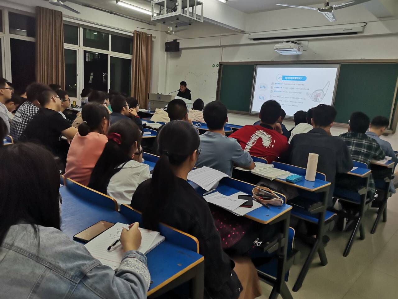活动分为线下宣传、线上竞赛两个阶段进行。9月16日—26日,2020级新生各班级陆续开展了防疫知识宣讲活动。主讲人以PPT的形式进行“普及防疫知识,重视公共卫生”知识宣讲。主讲人介绍了新型冠状肺炎的预防措施,抗疫感人故事以及公共卫生建设相关知识。宣讲会上,主讲人介绍了防疫知识竞赛相关事宜,同学们兴致很高,踊跃报名参赛。