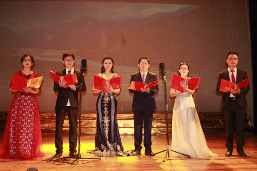 在这欢庆的日子,自然不能少了老师们的参与。在这300多亩的土地上,正是因为有了他们的存在,为一代又一代的九医学子开启了追梦的大门,让他们走上了各自理想的未来。今天的他们,在我们共同深深热爱的这片热土上,在这个师生共庆的舞台上,为我们朗诵了一首《我的祖国》,为人师者,不仅给我们授业、解惑,更为我们受益终身的是传道,是他们教会我们做人的道理,鼓励我们做一个爱国爱校的人,师道,不外如是。正是有了他们的辛劳付出,才有了今天的美好九医,才有了我们九医学子的美好前景。