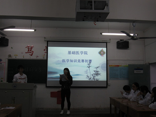 | 为了检查同学们的医学知识4月26日晚,伟德国际1946官网在华文楼605到608教室举行医学知识竞赛初赛。伟德国际1946官网大一各班员工代表参加此次比赛。    比赛分为“必答题、抢答题、心有灵犀和各抒己见”四个环节,每个比赛教室分别有三组代表队进行比赛,并且有三名裁判和一个主持人。其中,最激烈的一个环节当属抢答题环节,同学们通过手机拨打主持人的手机进行抢答,答对了加分,答错了则扣分。这不仅要求参赛队员要有丰富的医学知识,而且要有敏捷的思维能力。而心有灵犀则由一位成员用肢体语言表达给出的名词,另一名成员猜测,这个环节旨在考验同学们的理解能力和合作能力。最后,主持人让参赛成员们观看了两则关于医患关系的案例,再由各组派出一名队员抒发他们组的意见和看法。   这次比赛,让同学们丰富了医学知识和发展了思维能力,并且对医学有了更深层次的了解。 |